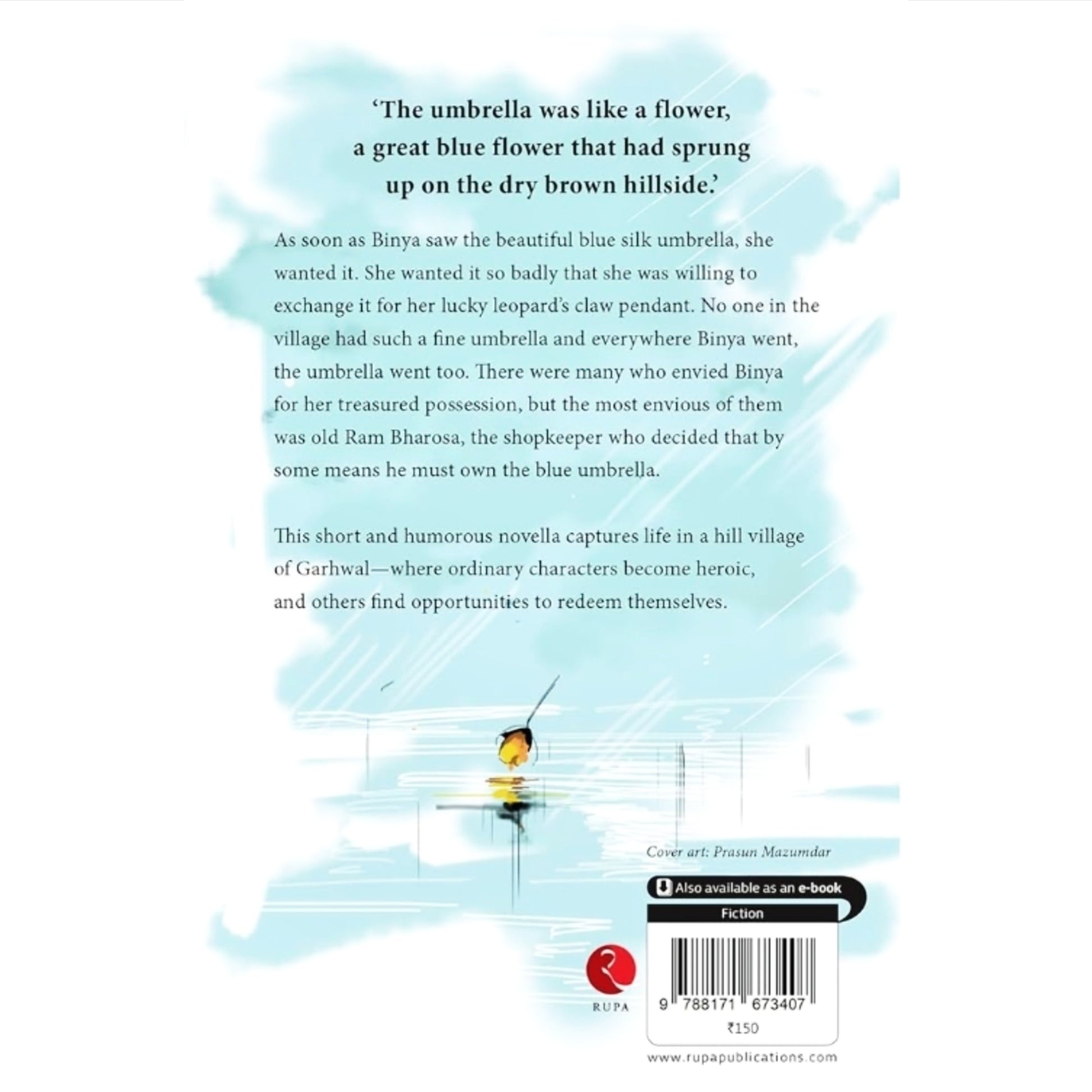 The Umbrella was like a flower, a great blue flower that had sprung up on the dry brown hillside.'In exchange for her lucky leopard's claw pendant, Binya acquires a beautiful blue umbrella that makes her the envy of everyone in her village, especially Ram Bharosa, the shop-keeper. Ruskin Bond's short and humorous novella, set in the picturesque hills of Garhwal, perfectly captures life in a village, where both heroism and redemption can be found.